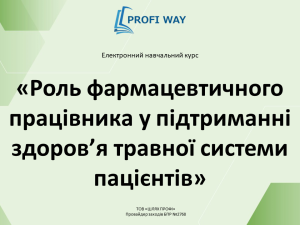 Презентація “Роль фармацевтичного працівника у підтриманні здоров’я травної системи пацієнтів” / Без категорії / Від Юлія Кремінь Розпочати тестування